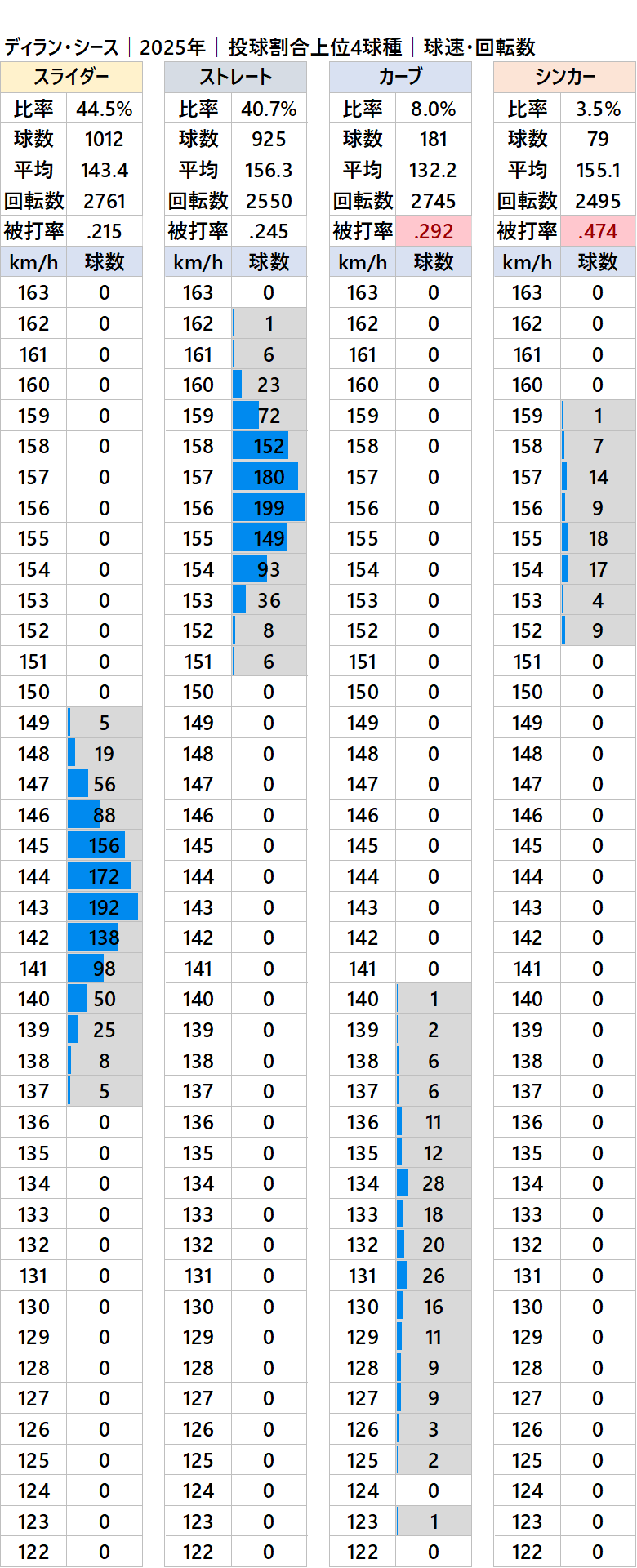 ディラン・シース|球速・球種・被打率│2025│球速ドットコム