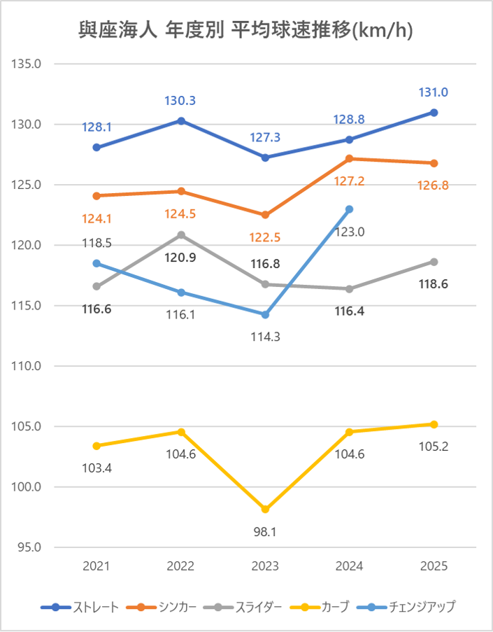 2024年と比較しストレートの平均球速は2.2km/h上昇。