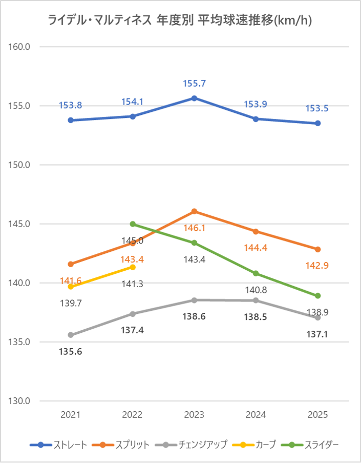ストレートの平均球速は2024年と比較し0.4km/h低下