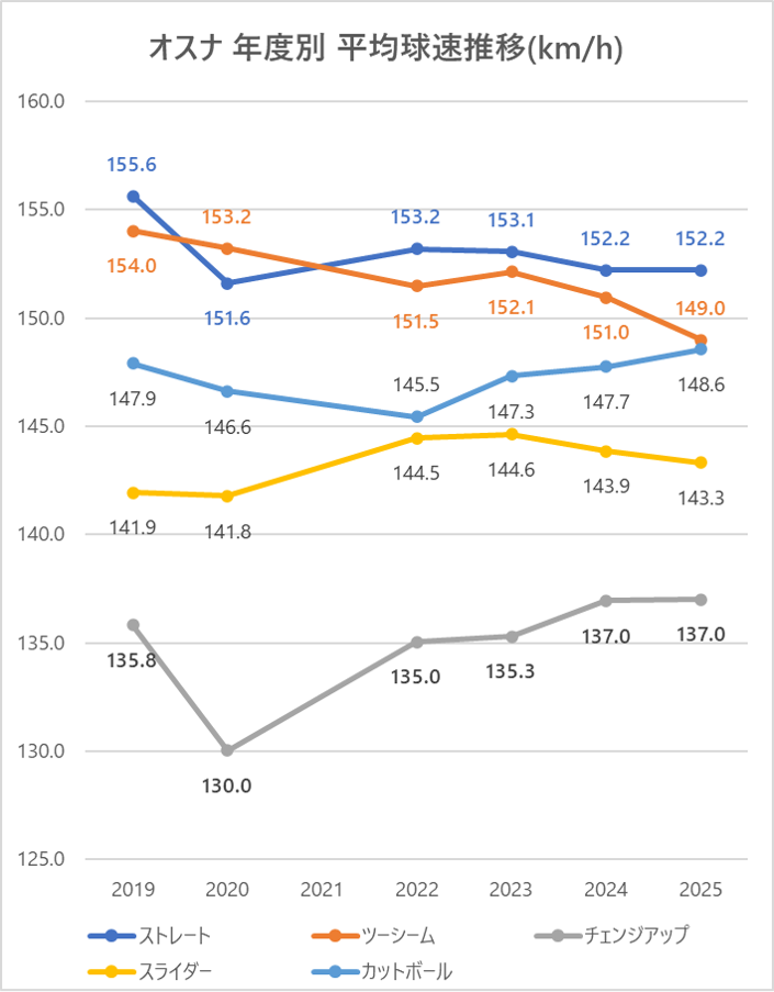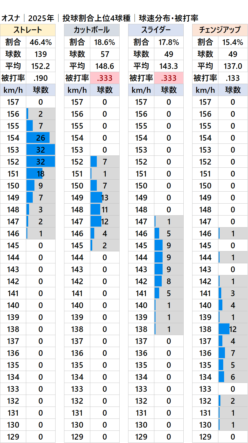 オスナ投手|球速・球種・被打率│2025│球速ドットコム