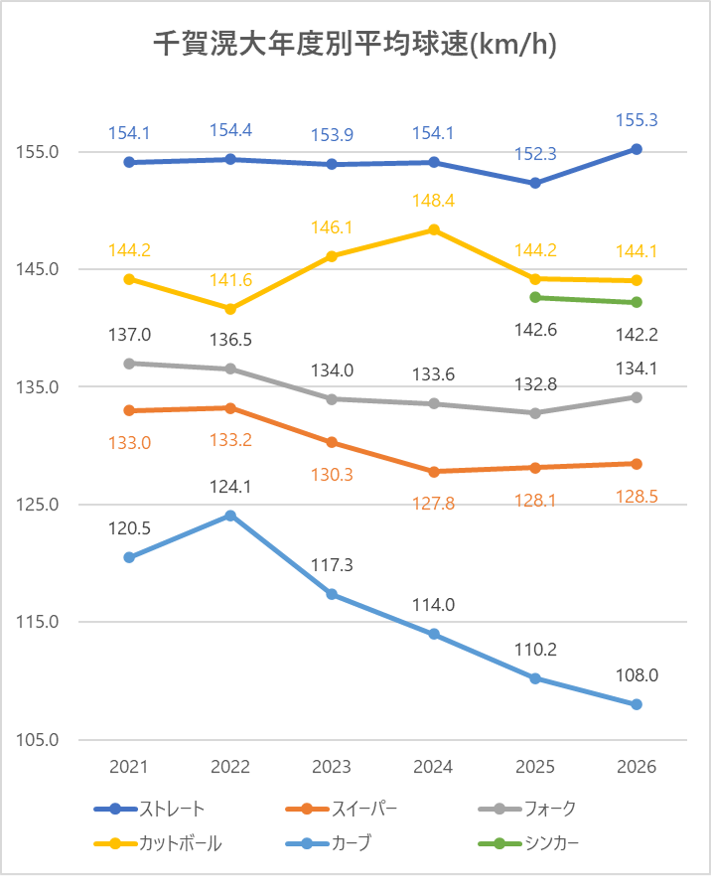 ストレート(4シーム)の平均球速は2024年と比較し1.8km/h低下。