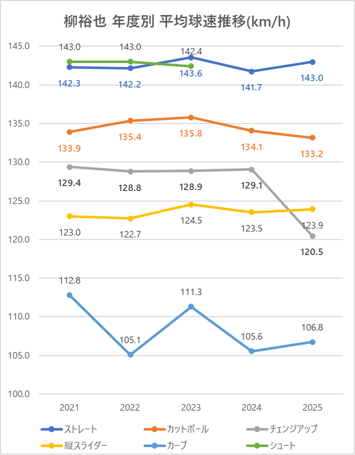 2024年と比較しストレートの平均球速は1.3km/h上昇。