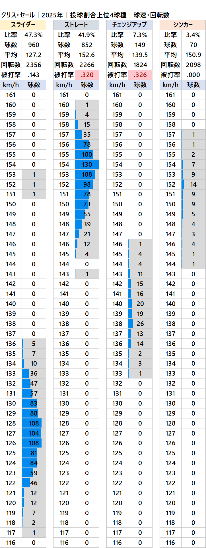 クリス・セール|球速・球種・被打率│2025│球速ドットコム