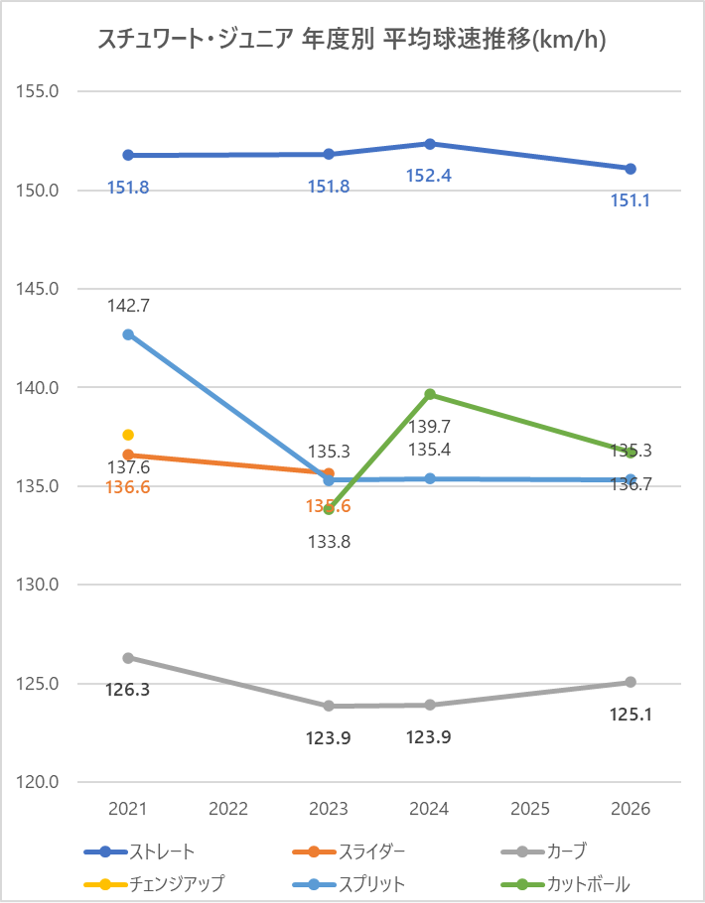 2023年と比較しストレートの平均球速は0.6km/h上昇。