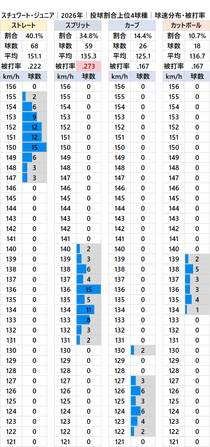 球種別球速・投球比率・被打率