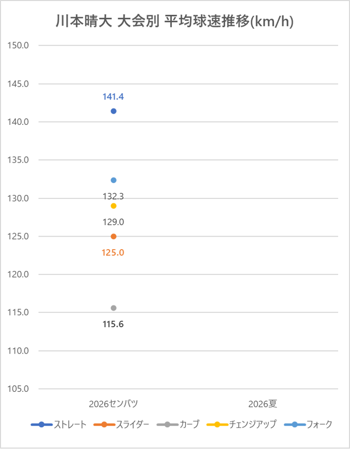 大阪桐蔭高の左腕、川本晴大投手の甲子園大会における球種別の投球割合・球速・被打率の情報です。