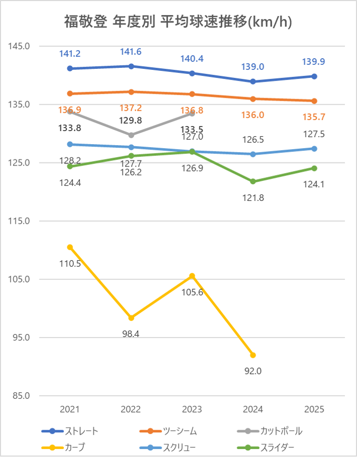 2024年と比較しストレートの平均球速は約1km/h上昇。