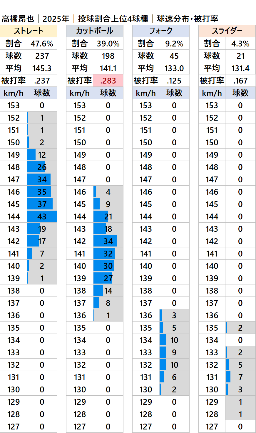 高橋昂也投手|球速・球種・被打率│2025│球速ドットコム