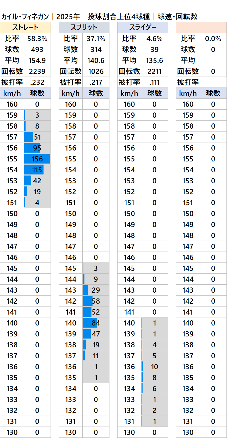 カイル・フィネガン投手|球速・球種・被打率│2025│球速ドットコム