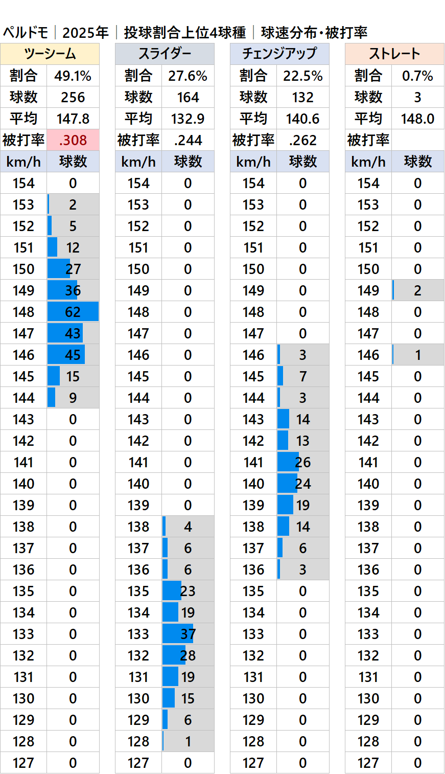 ペルドモ投手|球速・球種・被打率│2025│球速ドットコム