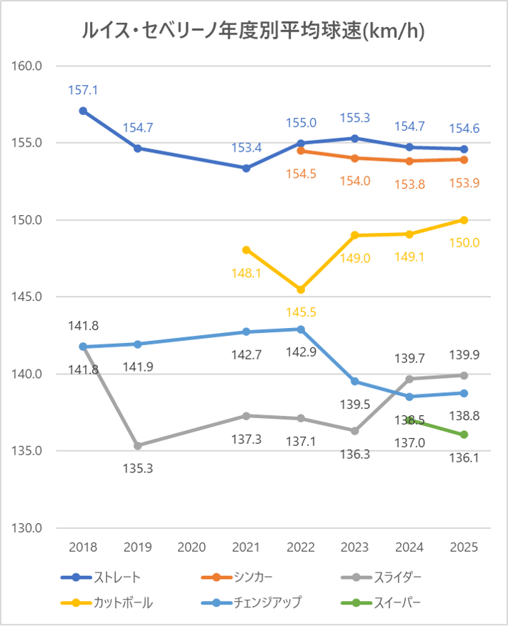 ストレート(4シーム)の平均球速は2024年と比較し横ばい。