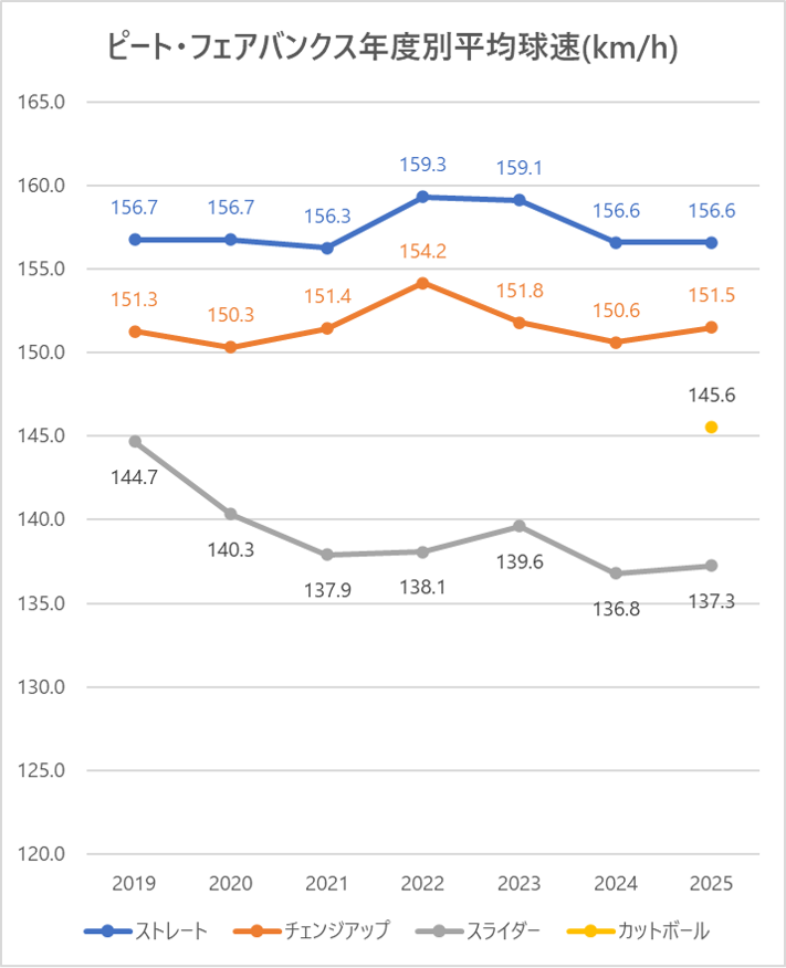 ストレート(4シーム)の平均球速は2024年と比較し横ばい。