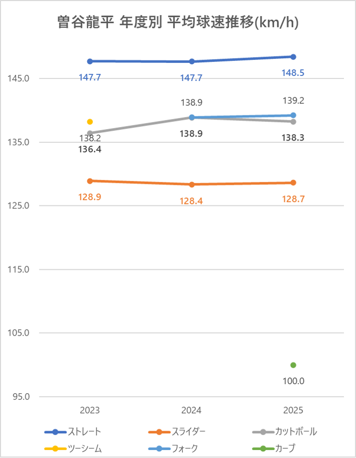 2024年と比較しストレートの平均球速は0.8km/h上昇。
