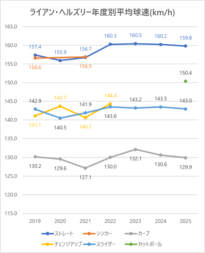 ストレート(4シーム)の平均球速は緩やかに低下傾向。
