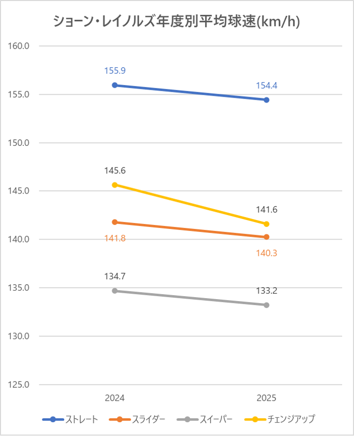 2024年と比較しストレートの平均球速は1.5km/h低下。