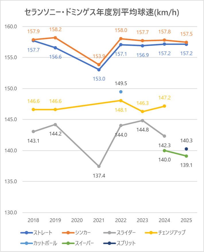 2024年と比較し、ストレート(4シーム)の平均球速は横ばい。