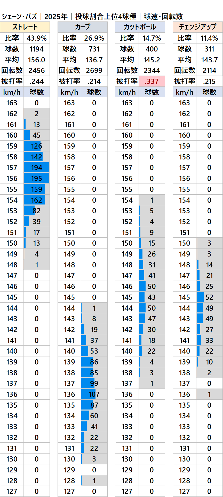 シェーン・バズ|球速・球種・被打率│2025│球速ドットコム