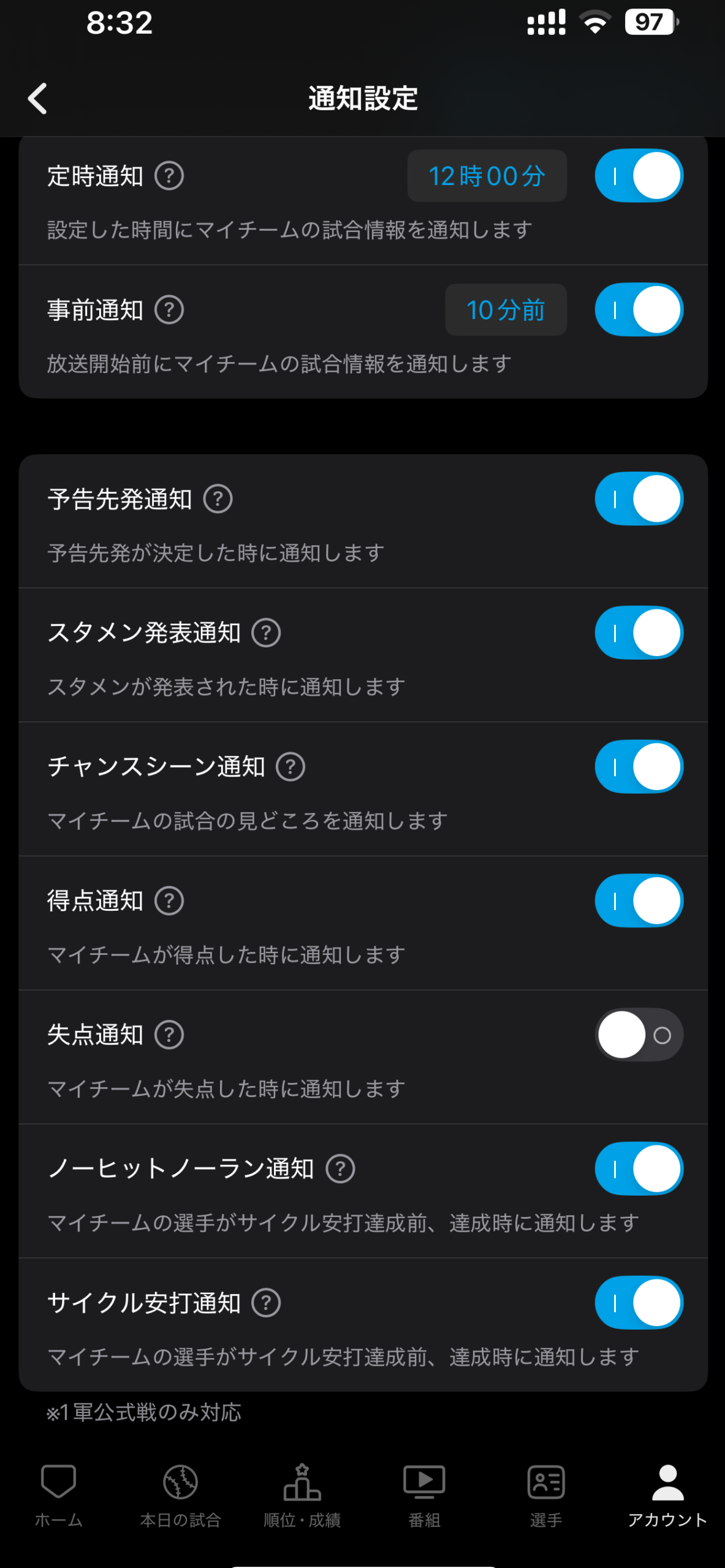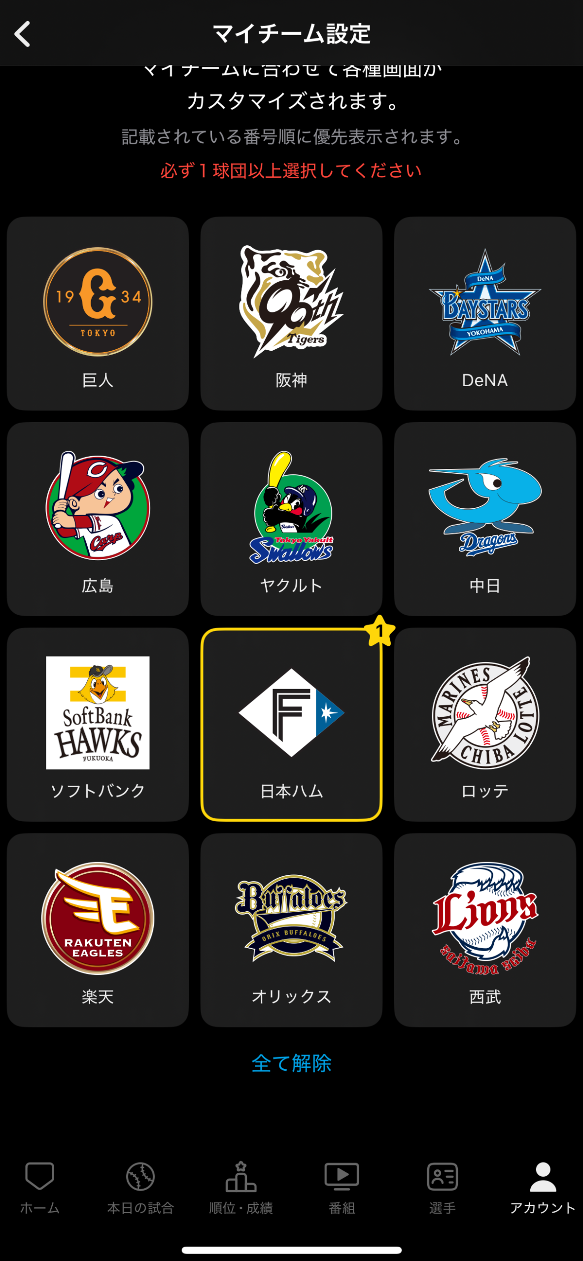 スカパー!プロ野球セットアプリの機能│②カスタマイズ通知