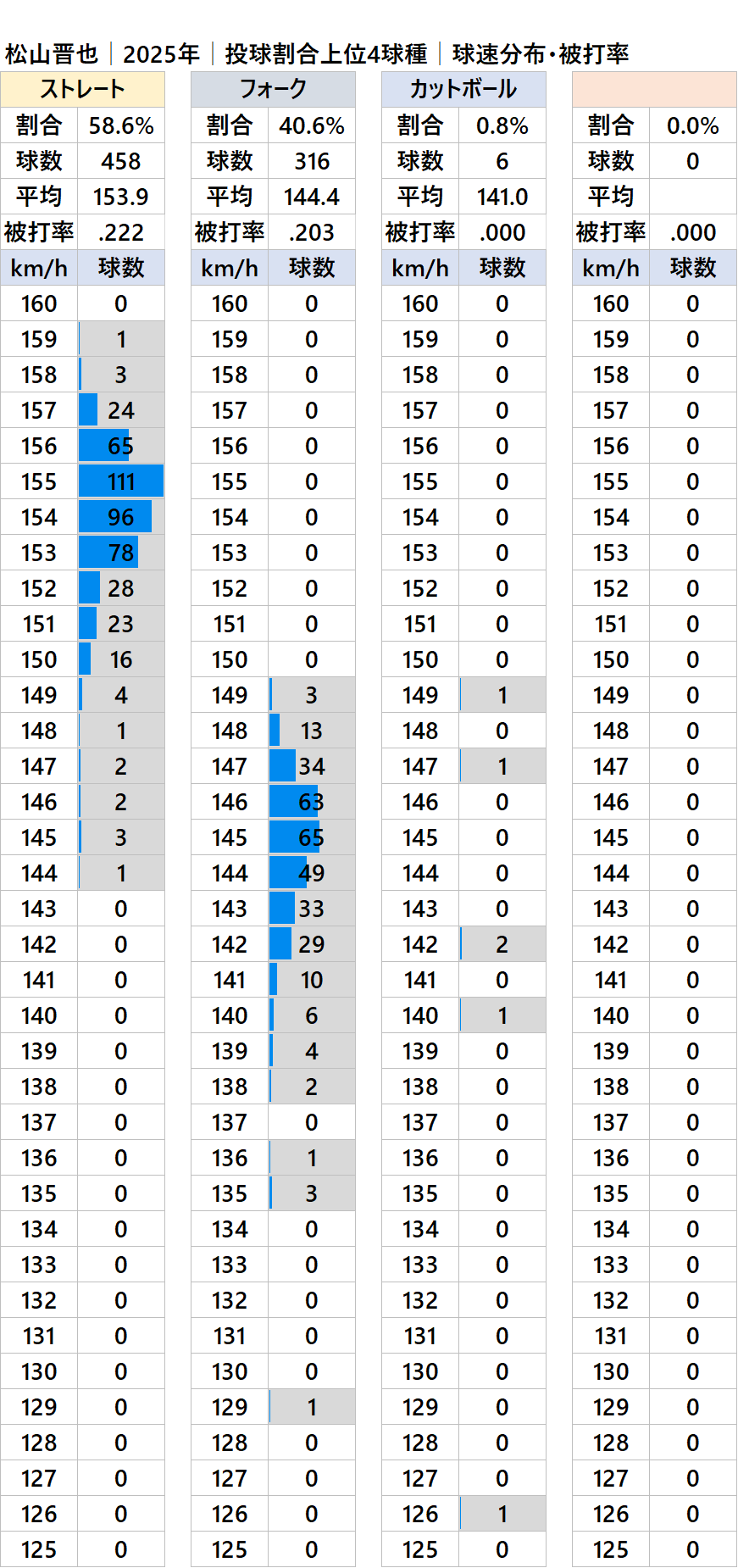 松山晋也投手|球速・球種・被打率│2025│球速ドットコム