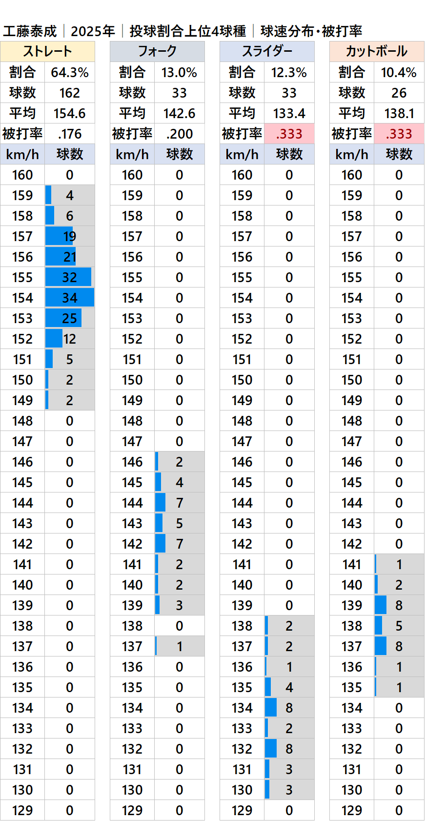 工藤泰成投手|球速・球種・被打率│2025│球速ドットコム