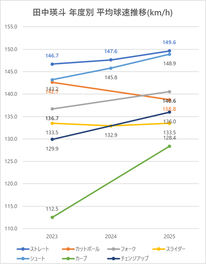 2024年と比較し、シュートの平均球速は約3km/h上昇。