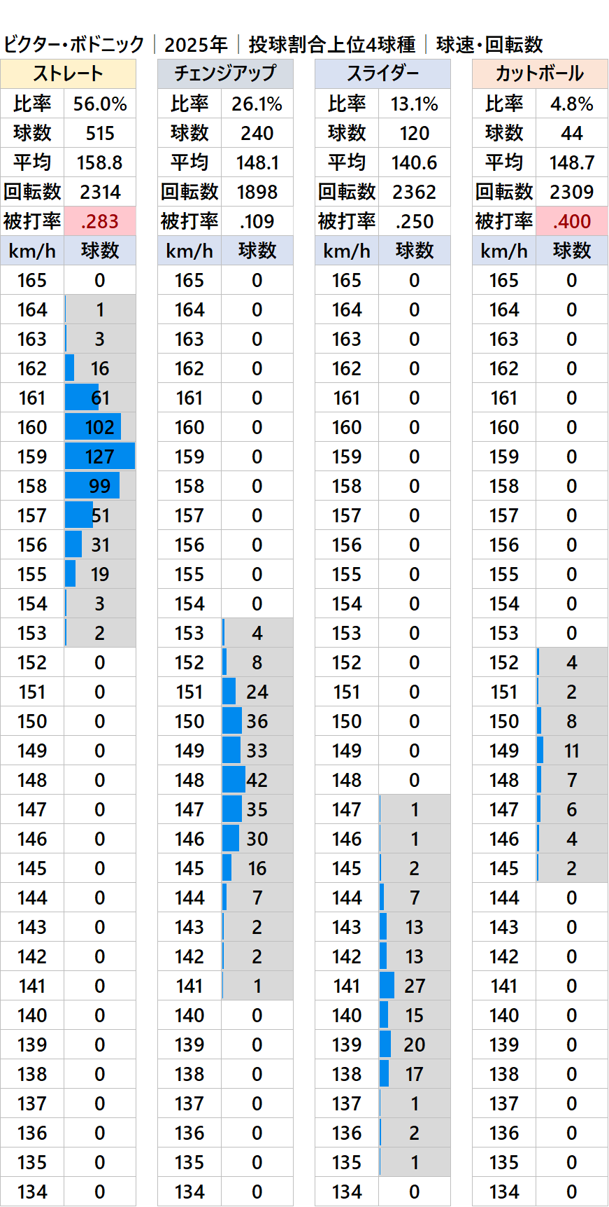 ビクター・ボドニック投手|球速・球種・被打率│2025│球速ドットコム