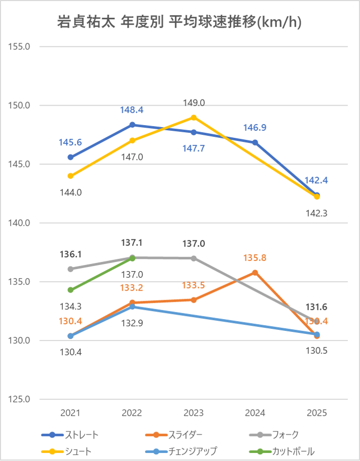 2024年と比較しストレートの平均球速は4.5km/h低下。