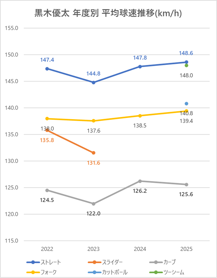 2024年と比較しストレートの平均球速は0.8km/h上昇。