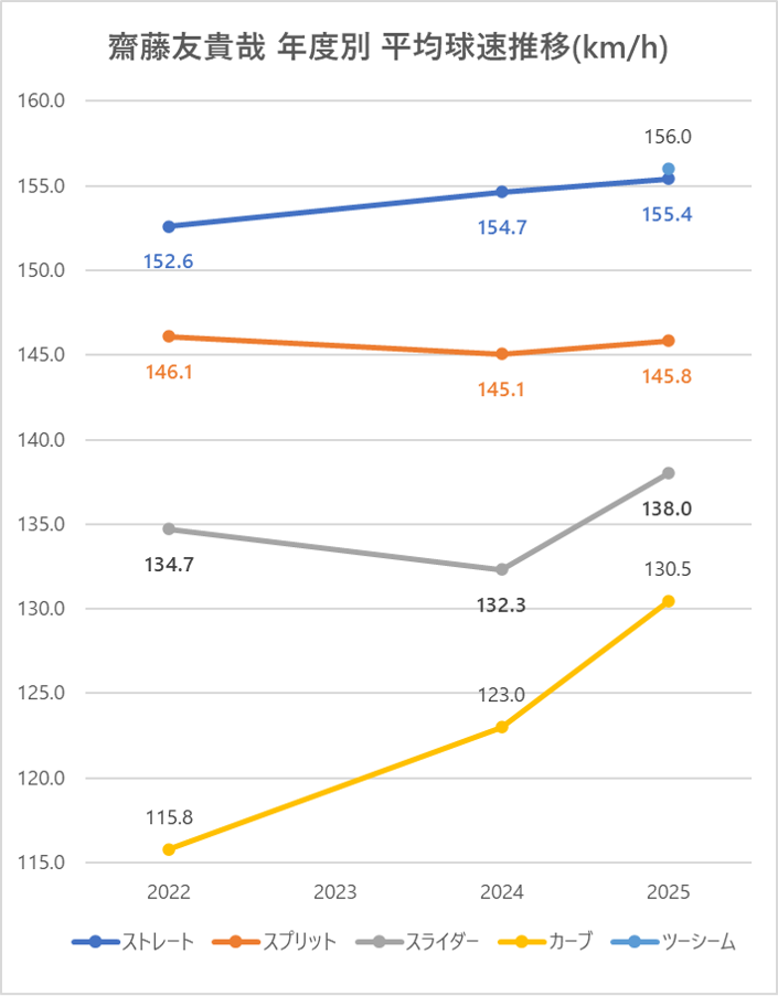 2024年と比較しストレートの平均球速は0.7km/h上昇。